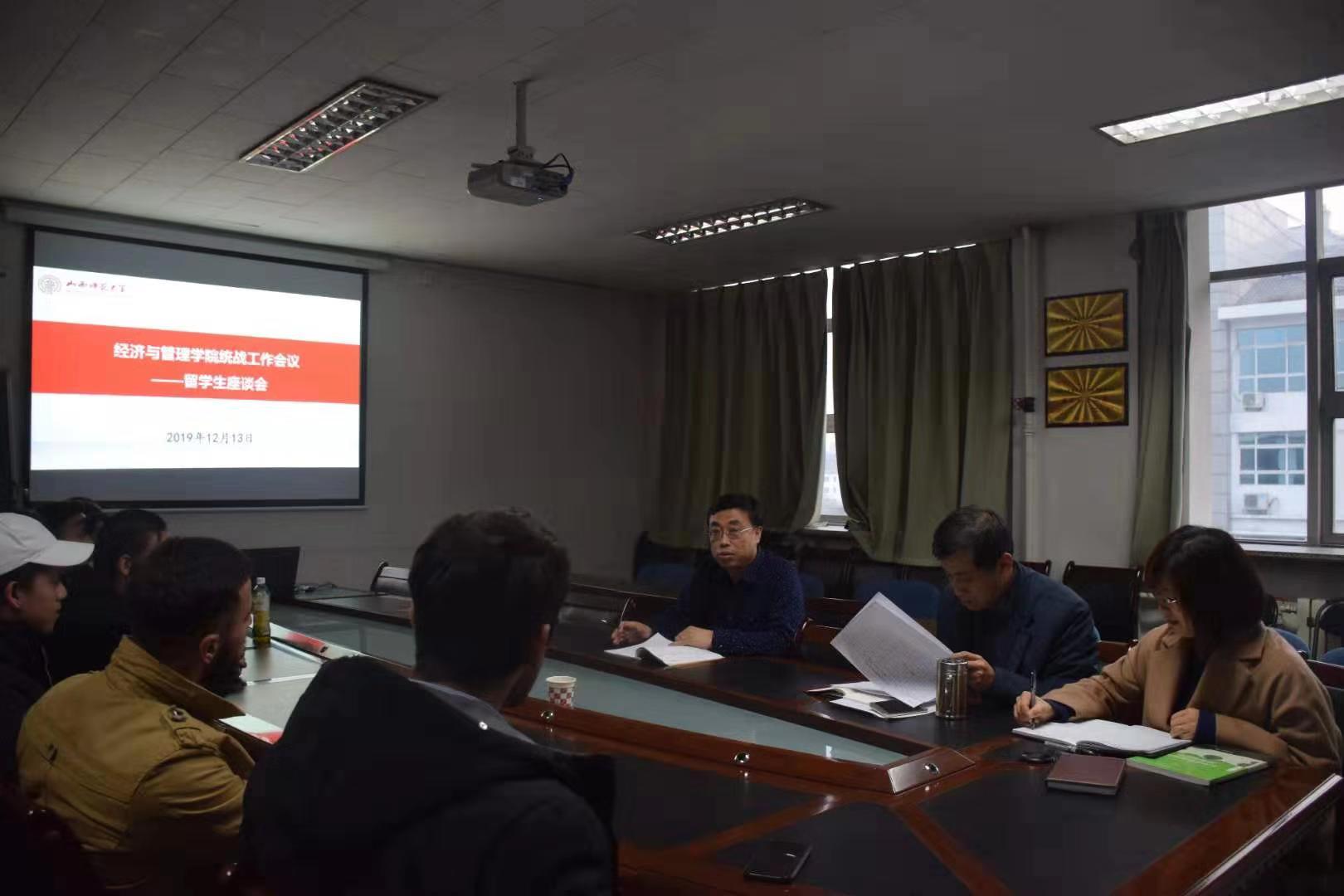 12月13日下午5点,公司于12611会议室举办职工座谈会。公司党委书记吴建军、党委副书记任文焕、副经理肖黎明参加,来自越南、老挝、塔吉克斯坦共7名研究生及本科生参加了座谈会。