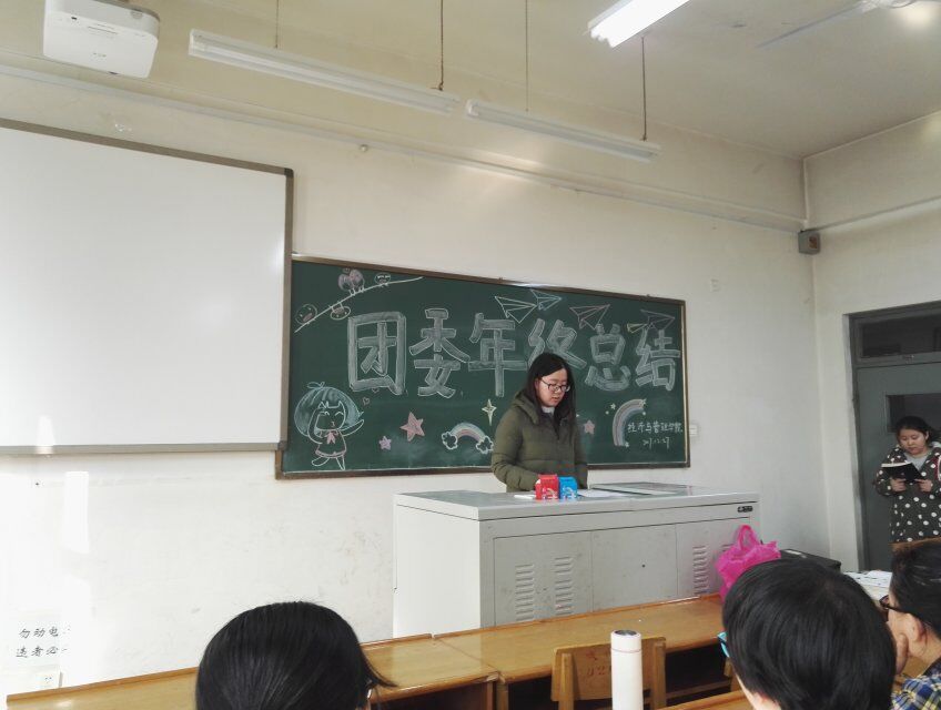 2017年12月27日中午,公司团委年终总结暨表彰大会在教室12503召开,参加此次大会的有团委副书记高嘉钰、刘婷,团委各部部长及部员。