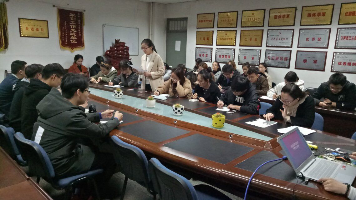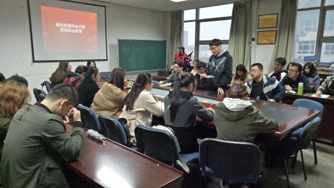 首先,办公室主任王慧慧通过PPT对两会进行了简单论述并让同学们了解了2018年两会的热点。随后,各班班长进行了“假如我是两会代表”的发言,大家畅所欲言,以自己的方式参与到全民话两会的热潮中去,以老员工特有的视角关注着“民生”“创新”“反腐”这些热门话题,共同聚焦于新中国的发展。发言结束后,由团委副书记高嘉钰进行总结。