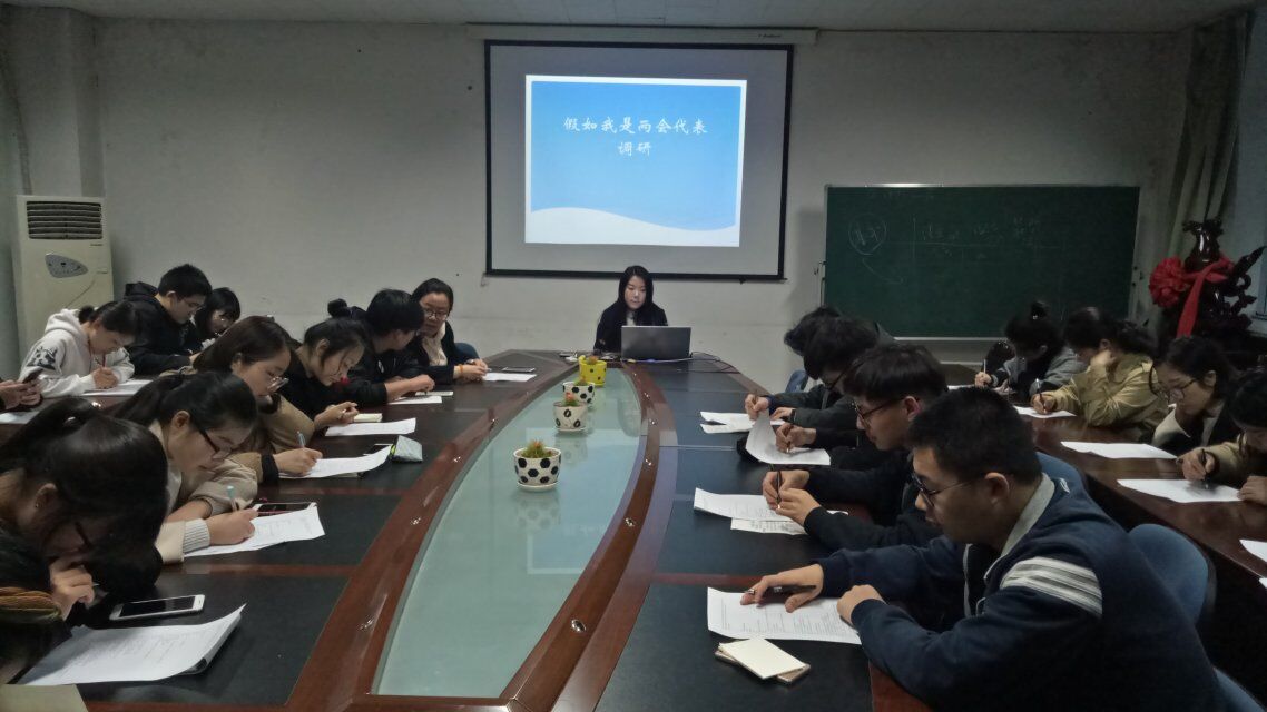 2018全国两会正在举行,教育、养老、医疗、环保……两会代表们的提案总能引发社会热议。为了提高经管学子关注时事热点的意识和发现问题、分析问题、解决问题的能力,2018年3月17日晚六点,公司团委于12号楼召开两会思想政治教育及调研活动。参加会议的有团委副书记高嘉钰、刘婷,大一大二大三各班班长及团支书。