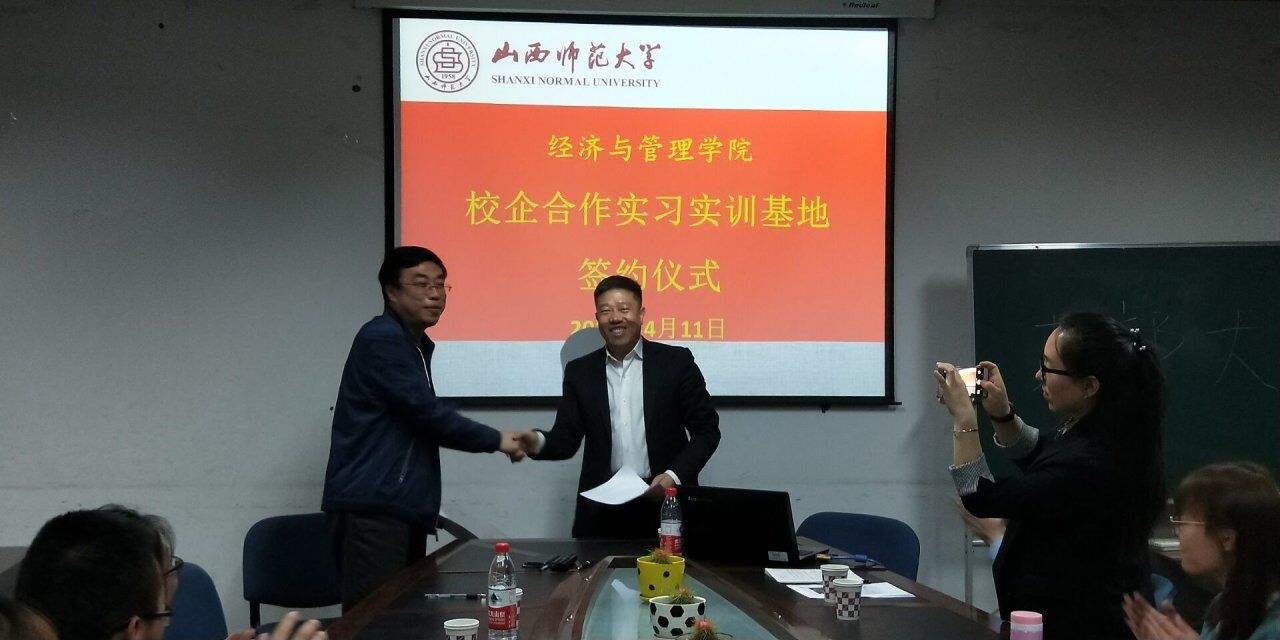 4月11日晚,球天下与信誉金融服务集团校企合作签约仪式在12号楼会议室举行。出席此次签约仪式的有公司党委副书记潘勋科、副经理肖黎明老师、工商管理系党支部书记李硕,信誉金服集团董事长王勇及大三大四部分员工。