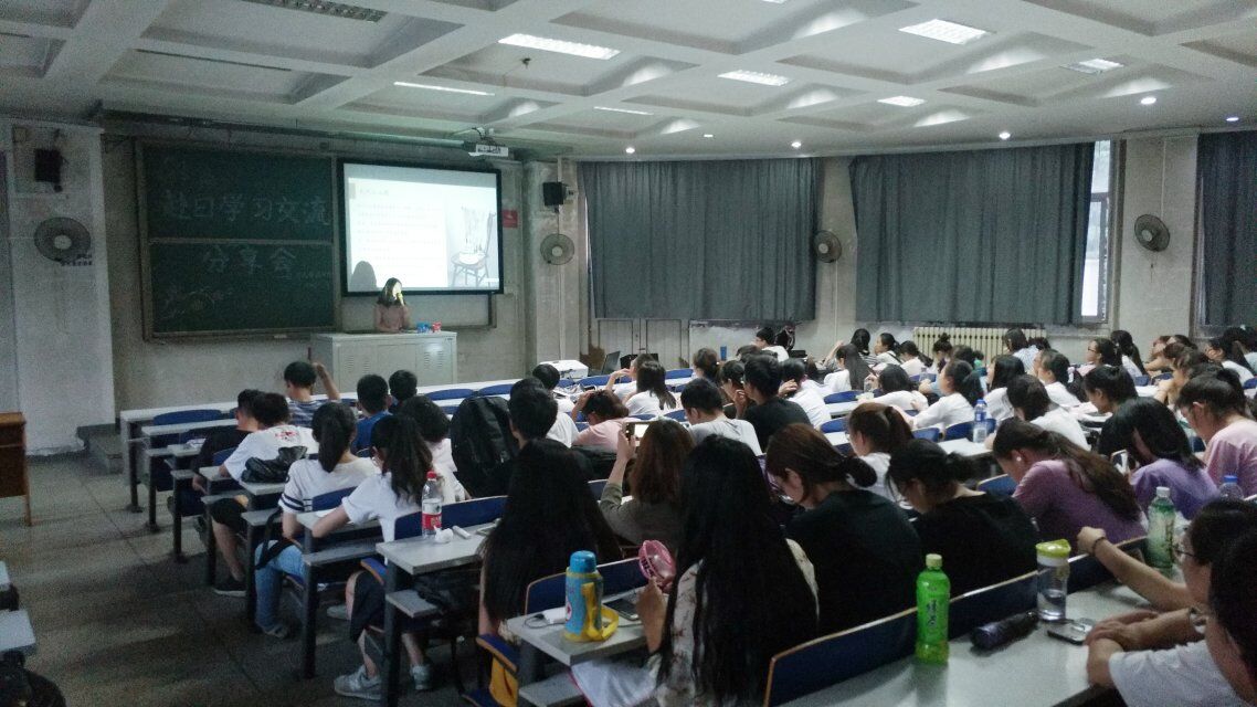 2018年6月14日下午,在07101教室,公司举办赴日学习交流分享会,会议主讲人是赴日学习的大三员工齐晗颖,球天下大一各班同学出席了此次交流会。