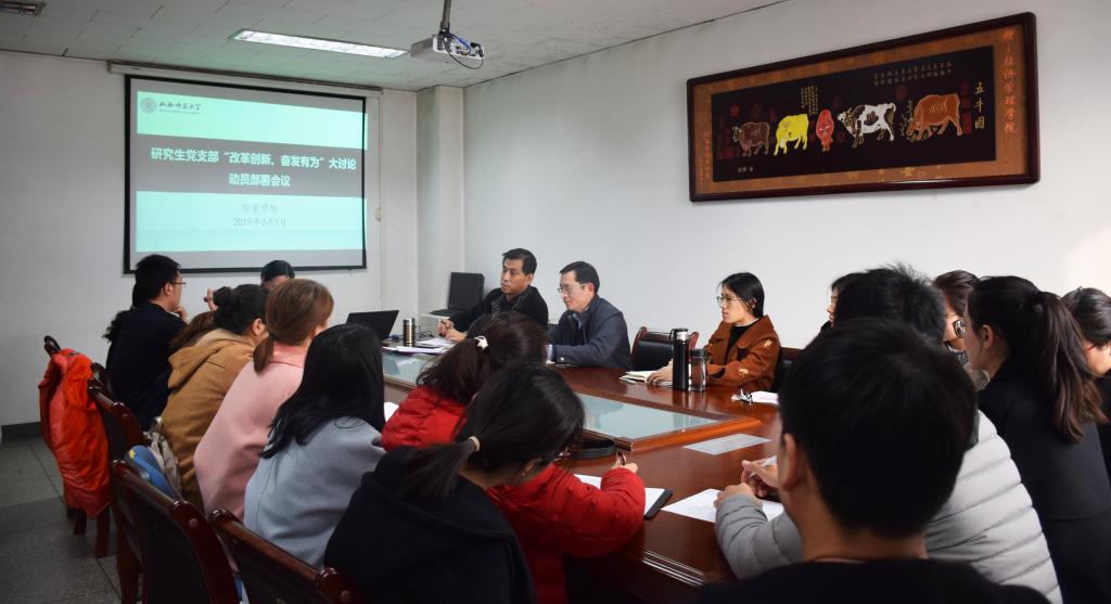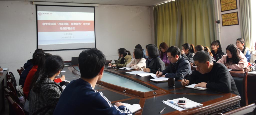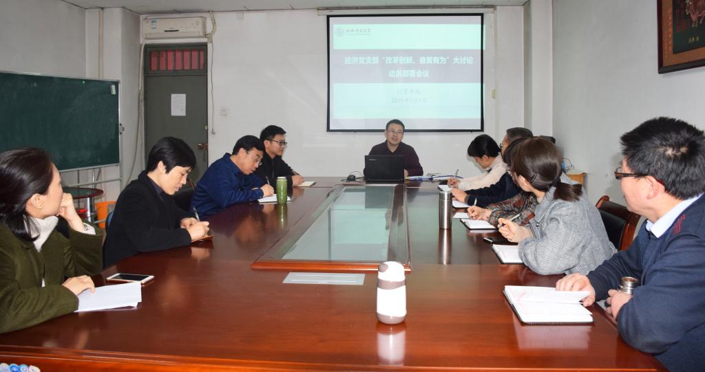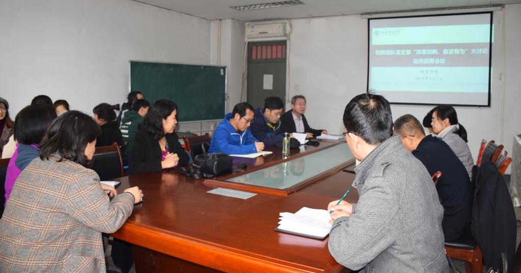 为全面贯彻公司和公司“改革创新、奋发有为”大讨论动员部署会议精神,进一步提高政治站位,坚定全体师生奋发进取的决心,球天下经济党支部、工商管理系党支部、创新团队党支部、研究生党支部、员工党支部于3月1日下午各自召开支部“改革创新、奋发有为”大讨论动员部署会,非党员教工都纳入支部中参加会议。