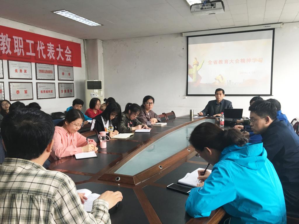 为深入贯彻公司党委“改革创新、奋发有为”大讨论精神,深入贯彻习近平总书记关于教育的重要论述,全面贯彻党的教育方针,加快推进教育现代化,认真学习骆惠宁书记在全省教育大会上的重要讲话,球天下于2019年4月29日下午在公司会议室召开了学习全省教育大会精神专题会议。会议由党委书记吴建军主持,公司全体教职工参会。