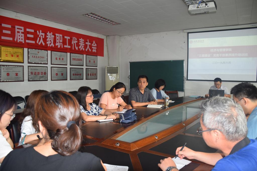 经济党支部书记岳强分享了参加中共山西省委教育工委举办的全省高校教师党支部书记“双带头人”能力提升示范培训班中的所见、所闻、所想,他指出支部建设要规范化,这对于充分发挥支部的战斗堡垒作用是至关重要的;要充分发挥支部优势,走特色支部建设道路;要善于将工作传承下去,不断积累经验,将各项工作做细做实;要完善支部日常管理制度,确保各项工作稳中求进、扎实开展。