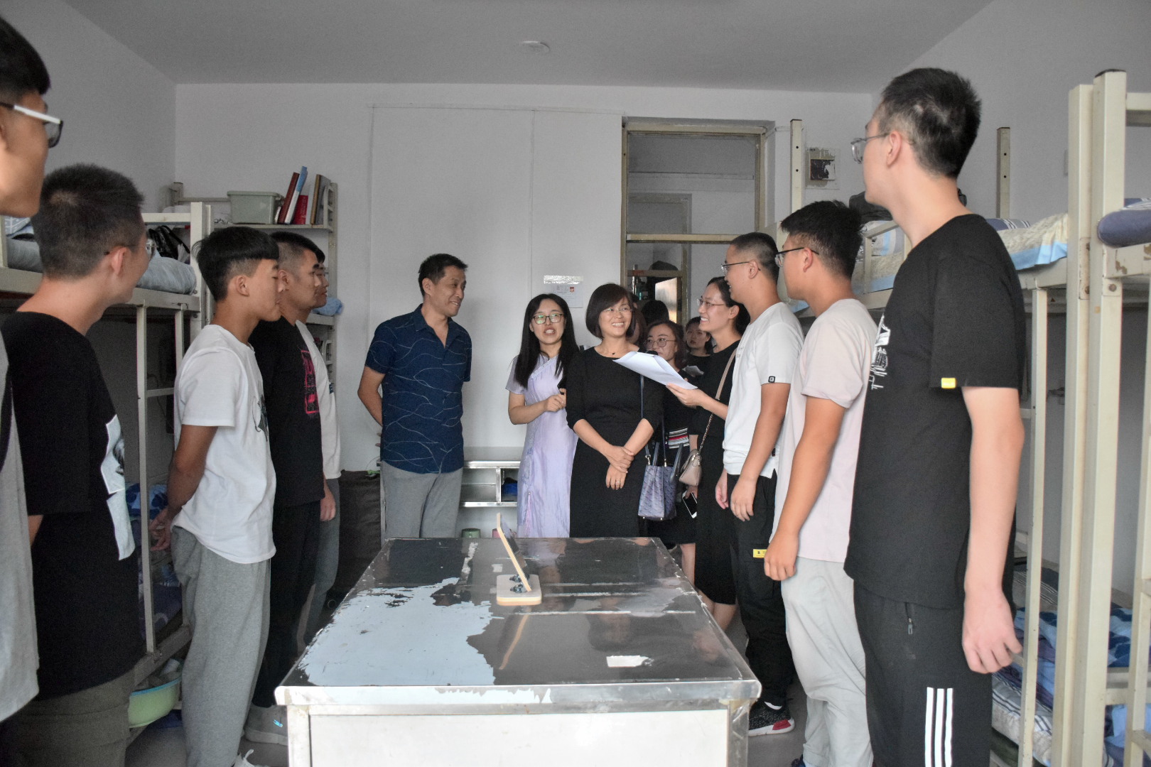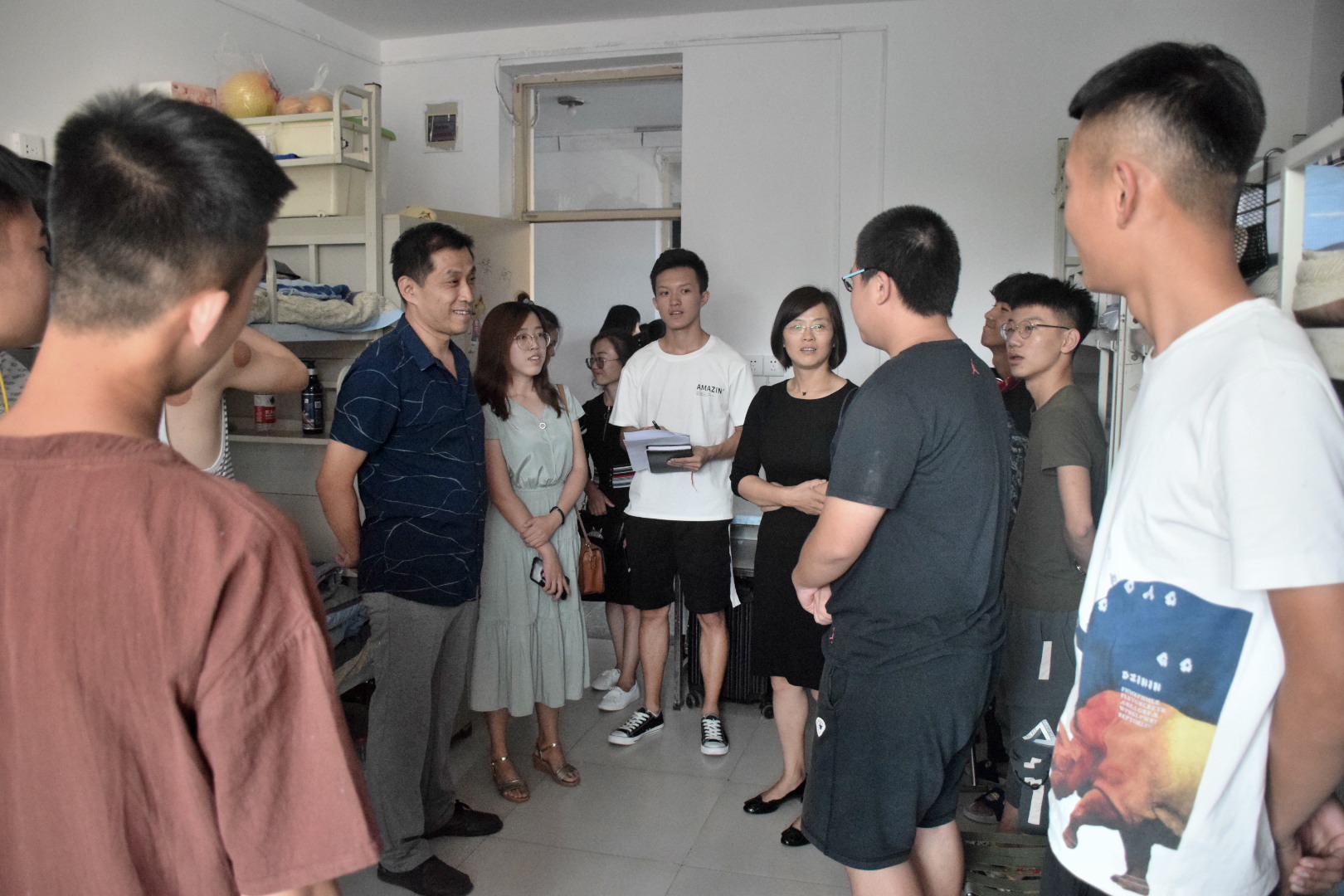 新学期伊始,为进一步全面了解新生的入学情况,帮助新生更快地适应老员工活,9月7日下午5点经管公司党委书记吴建军、党委副书记任文焕、专职辅导员毕星、新生辅导员景丽芳、李硕、付蓉以及员工会代表走访了公司2019级新生宿舍。