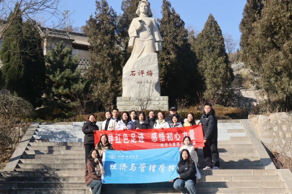 随后,队伍前往爱国志士石评梅故居。古村内的青砖黛瓦、故居内的古朴陈设承载着深厚的家国情怀。师生们在讲解员引导下,了解石评梅追求真理、投身进步事业的事迹,从她的诗文手稿与生活遗物中感受“以笔为刃、以文报国”的赤子之心。