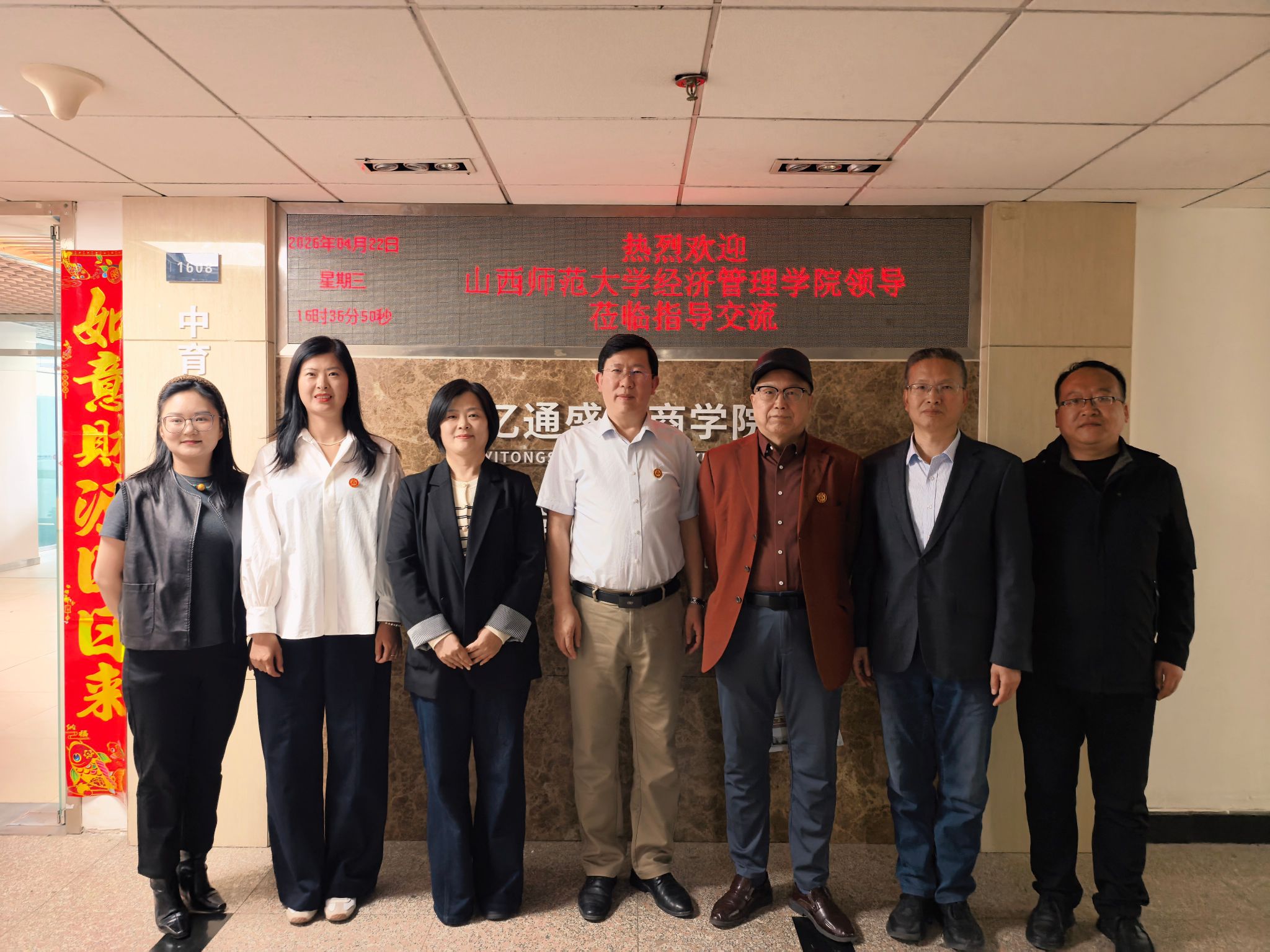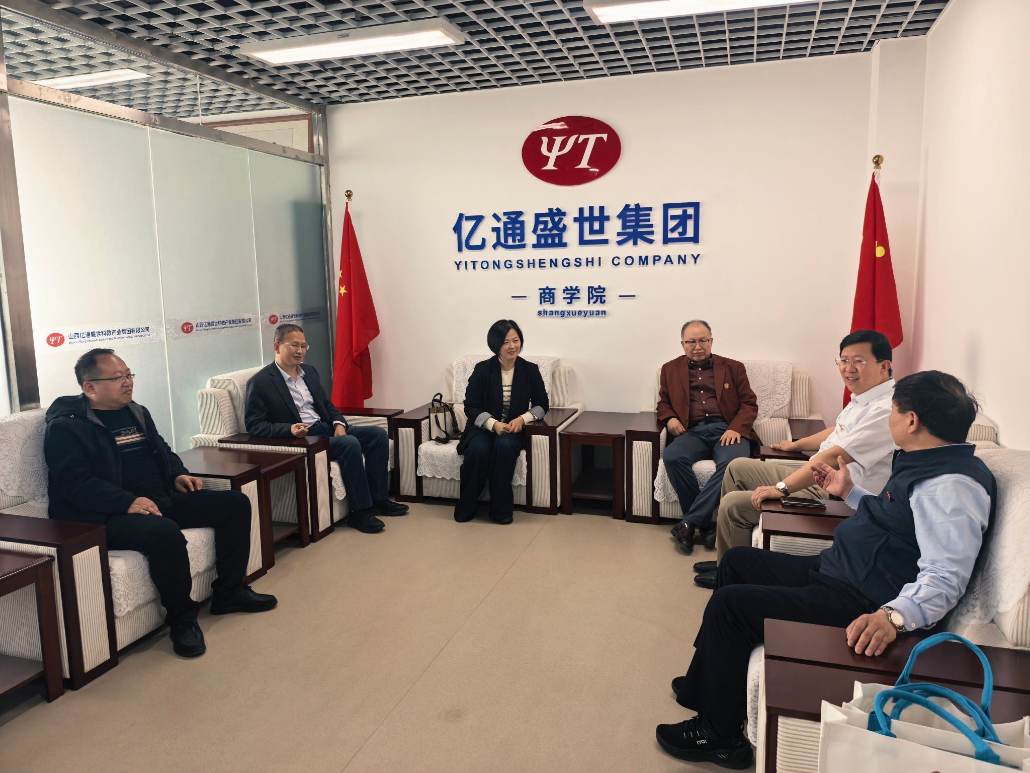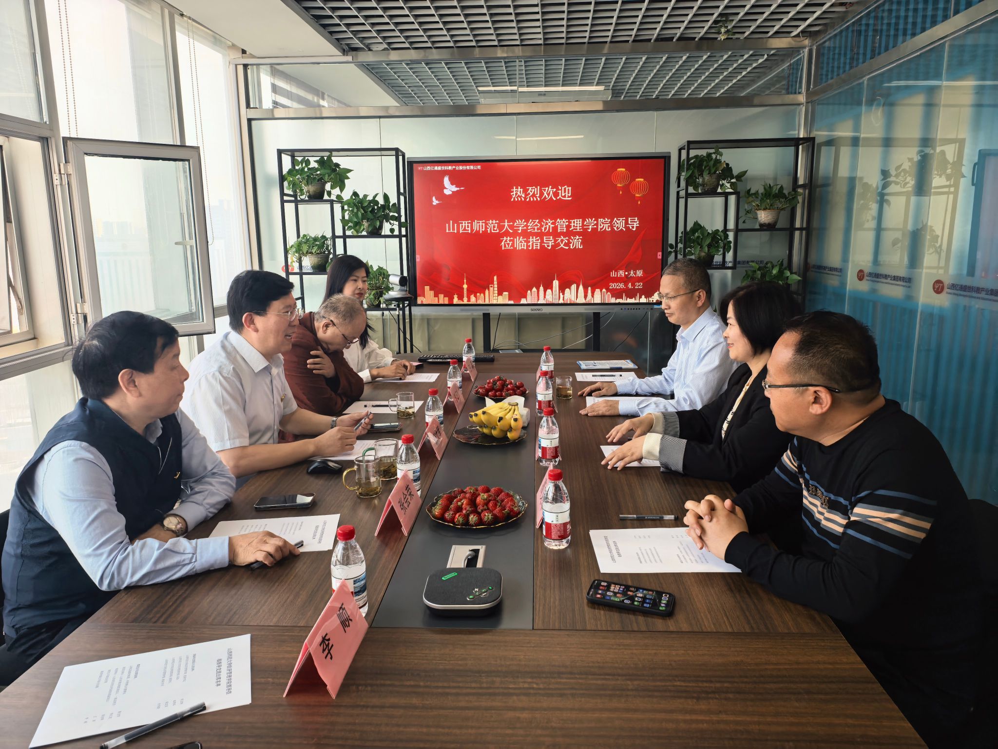 在山西亿通盛世集团、中育博公司,公司领导一行受到了集团董事长靳文军、集团总顾问李江龙、集团顾问张会荣及相关业务部门负责人的热情接待。座谈会上,集团董事长靳文军全面介绍了公司的创立背景、发展历程、主营业务、人才结构以及当前与未来的岗位需求。公司经理邰秀军向企业方详细介绍了公司的发展历程、学科专业特色、人才培养模式以及2026届毕业生的基本情况。他表示,公司始终坚持面向经济社会发展主战场,致力于培养高素质、应用型的经营管理人才,希望通过此次走访,深入了解企业的人才需求与行业发展趋势,为员工在现代服务业、商贸流通、企业管理等领域寻求更广阔的实践平台与发展空间。