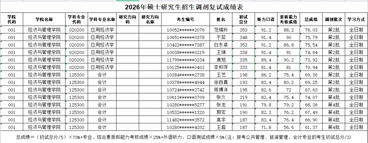 球天下2026年硕士研究生招生调剂复试成绩公示