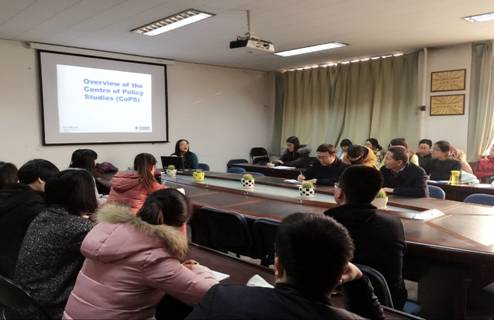 在报告会上,彭秀建博士首先介绍了她所在的澳大利亚维多利亚大学政策研究中心近年来在CGE模型开发上所做的一系列工作,包括设计开发了针对中国问题的ChinaGem模型、SinoTerm模型等,然后,彭博士,介结了CGE模型的设计原理,指出一般均衡模型是在新古典经济理论市场出清的假设指导下,强调各经济体的相互联系,是基于历史数据的预测的一种分析方法,可以为公共政策分析和预测提供强有力的工具支持。在介绍了不同层面的CGE模型外,彭博士还以中国目前讨论较为激烈的“延迟退休”公共政策为例,分析了这一政策的出台将对城市和农村人口的劳动参与率的影响,及对中国经济的可能影响。此外,彭博士还同公司的部分教师、研究生做了交流。
