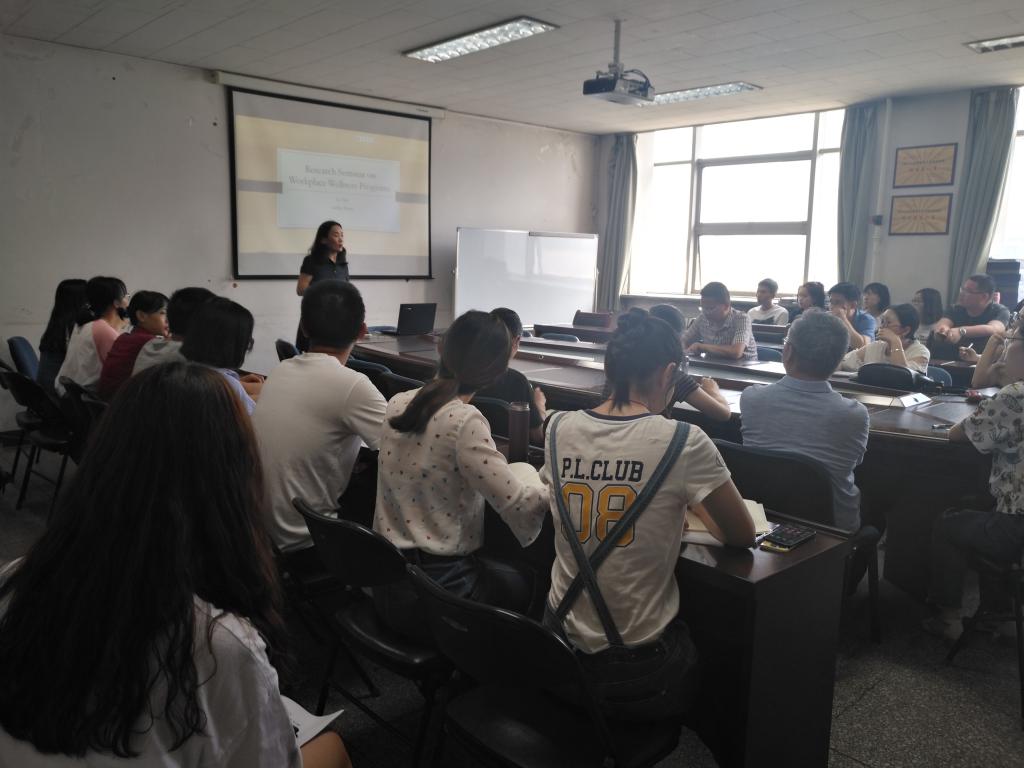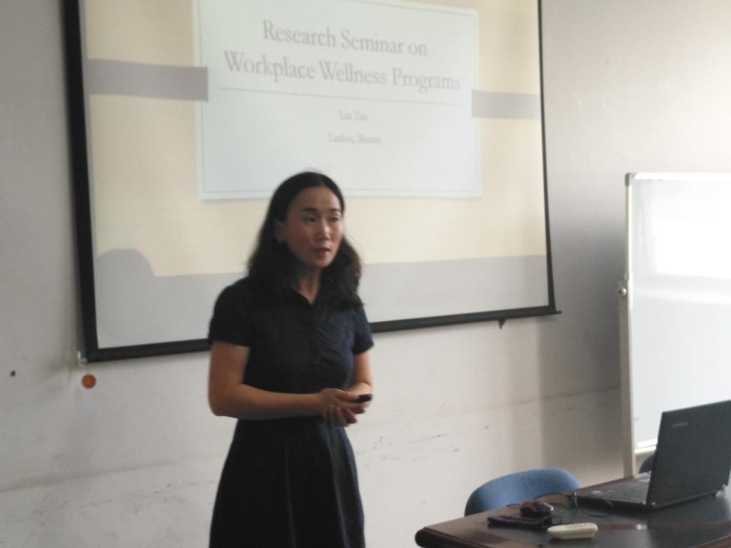 修琳教授从美国医保改革这一大背景出发,指出为了降低医疗保险的费用,提高工作效率,越来越多的美国企业参与到“Wellness Programs”项目中,使用各种方法提高企业员工的健康。修琳教授围绕这一背景,针对美国企业员工如何能更好的参与到“Wellness Programs”项目中并提高企业员工的工作绩效进行了深入研究和探讨。讲座结束之后,老师和员工们与修老师进行了互动交流,提出了各自的疑问,邰秀军教授针对调查对象的控制问题与修琳教授进行了深入的交流,任义科教授对修琳教授所提出的方法与研究方向进行了详细的探讨,对此修老师都一一做了详细的回答。最后,邰老师再次对修琳教授的到来表达了诚挚的感谢,对她的学术报告做了总结,并希望此次报告能给大家有所启发。