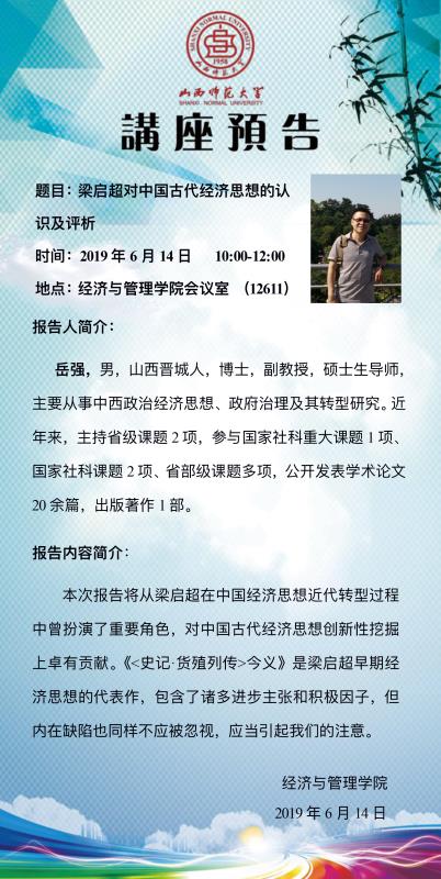 经管论坛第十三讲预告:梁启超对中国古代经济思想的认识及评价
