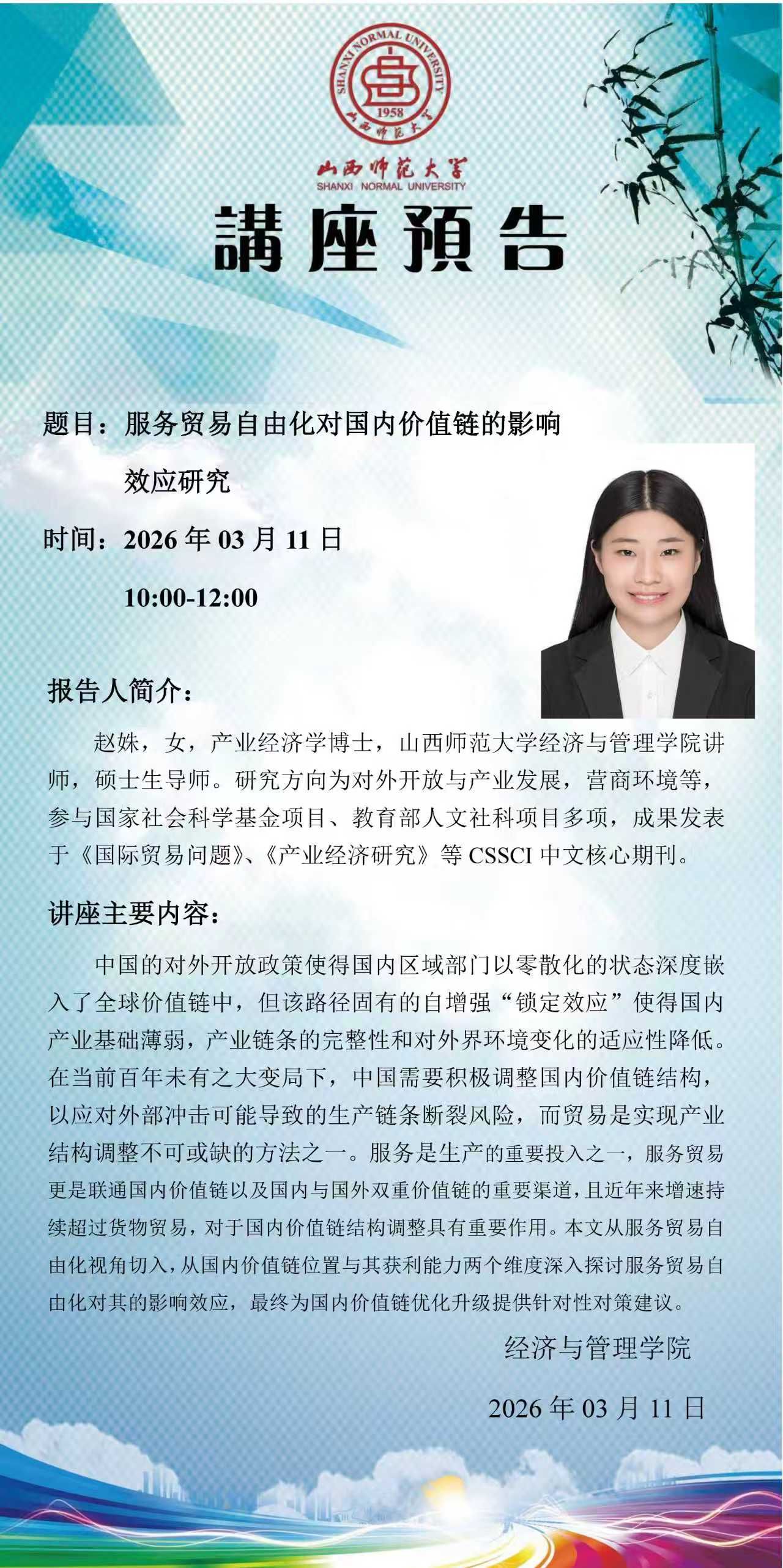 讲座预告-服务贸易自由化对国内价值链的影响效应研究