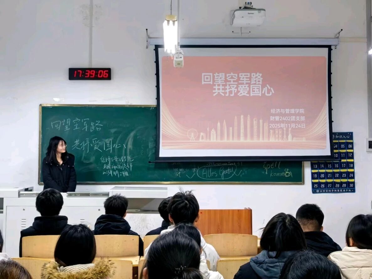 活动中,团支书组织同学们观看了空军发展纪录片以及战机列装、任务执行等精彩片段,从“无”到“强”,人民空军的一步步跨越都凝聚着忠诚与热血,一幕幕热血澎湃的画面直击人心。同学们深刻体会到空军发展背后的艰难与荣光。接下来,同学们围绕“青年如何传承爱国精神”展开小组讨论,在激烈的讨论中,同学们各抒己见,纷纷表示将传承英雄的爱国主义精神,争做新时代好青年。