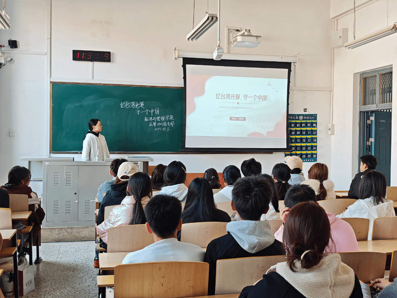 各支部带领全体同学以“历史溯源——法理解读——现实担当”为线索,系统学习了台湾光复的历史脉络。通过观看纪录片《台湾光复档案》片段,让同学们直观感受台湾同胞50年反抗殖民统治的英勇斗争,深刻认识到“台湾自古以来就是中国领土不可分割的一部分”不仅是历史事实,更是国际社会公认的法理准则。研讨环节中,同学们进一步明确:坚守一个中国原则,是维护台海和平稳定、保障两岸同胞根本利益的唯一正确道路。