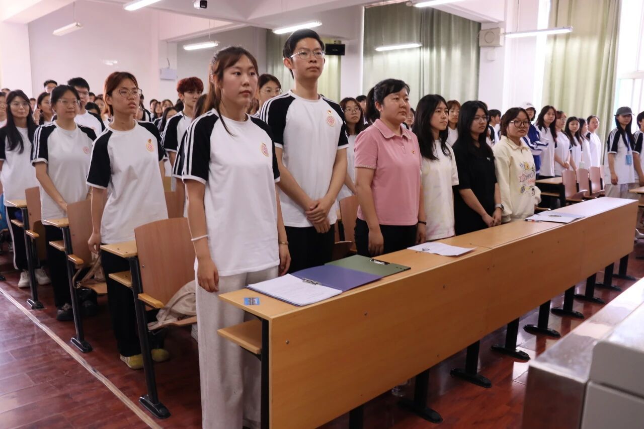 在场人员全体起立合唱国歌,伴随着庄严的国歌,入团仪式拉开帷幕。
