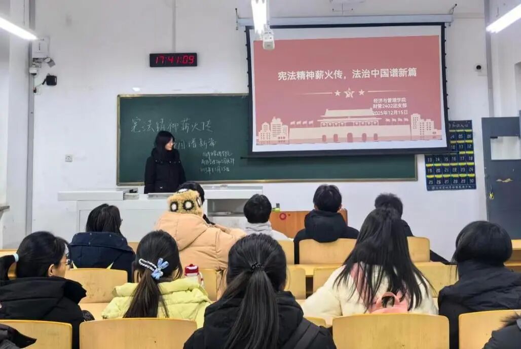 活动中,各班团支书结合生动案例解读宪法核心条款,带领全体同学重温我国宪法从制定到不断修订完善的历程。在团支书的引导下,同学们踊跃发言,分享对宪法的理解与感悟,在热烈的交流中深化对宪法的认知,切实感受到宪法精神滋润生活的点滴细节。